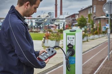 Für Prüfungen von Ladestationen für Elektrofahrzeuge. Beinhaltet den NEUEN Prüfadapter-Set EV-520-D. Mit dieser Kombination aus hochwertigen Geräten können Sie die Funktion und Sicherheit von Ladestationen (Ladebetriebsart 3) prüfen.